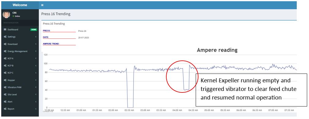 Kernel Expeller Running Hour Record based